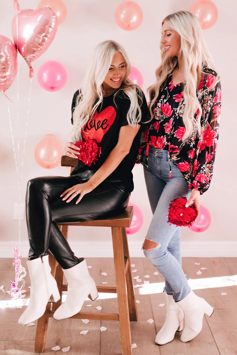 Black Floral Long Sleeve Frilly Shirred Square Neck Mini Dress